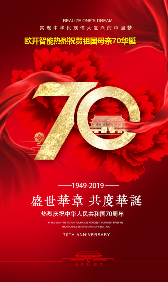 青島歐開智能系統有限公司熱烈祝賀祖國母親70華誕!